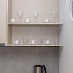 Entre as comodidades completas oferecidas está cozinha equipada com chaleira elétrica, máquina de café/chá e refrigerador.